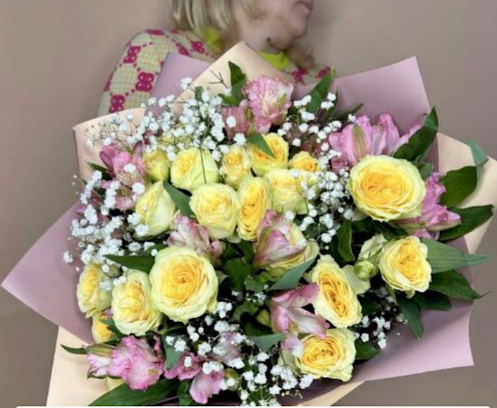- Состав Альстромерия 5,гипсофила 1,кустовые розы 4