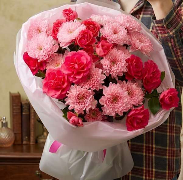 - Букет из Роза кустовая, Хризантема